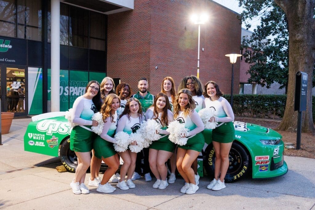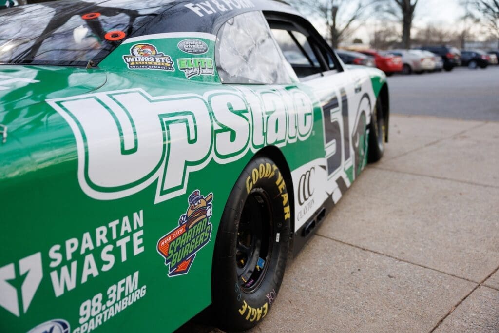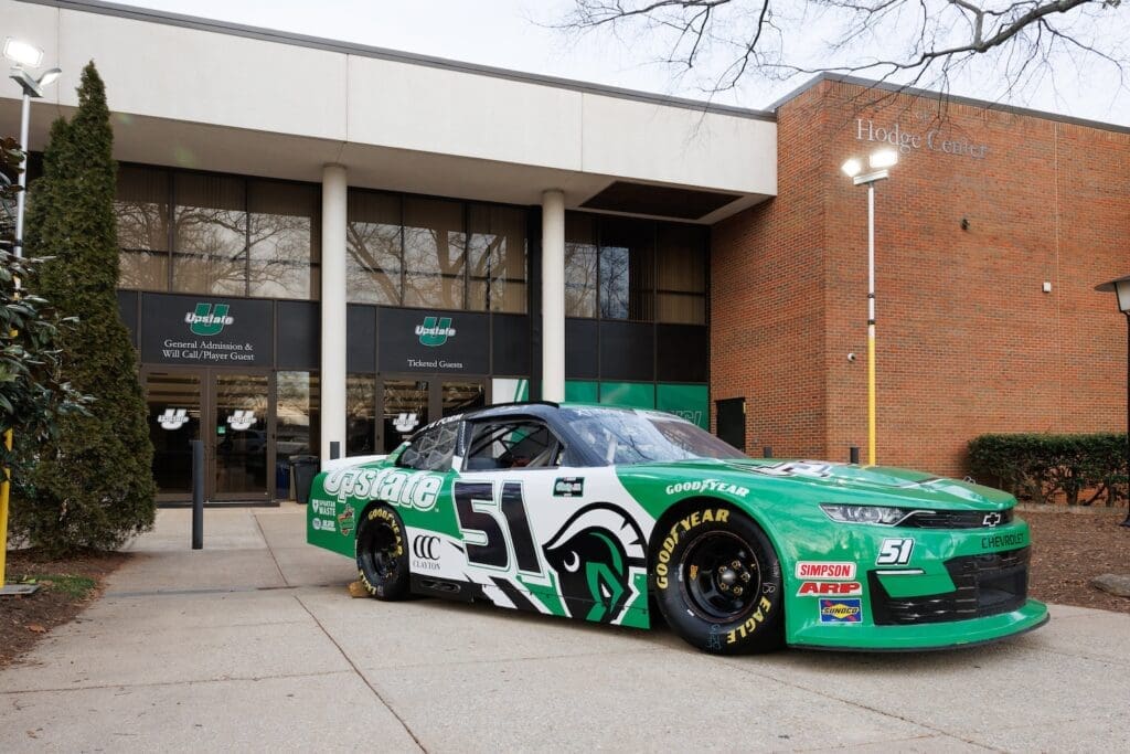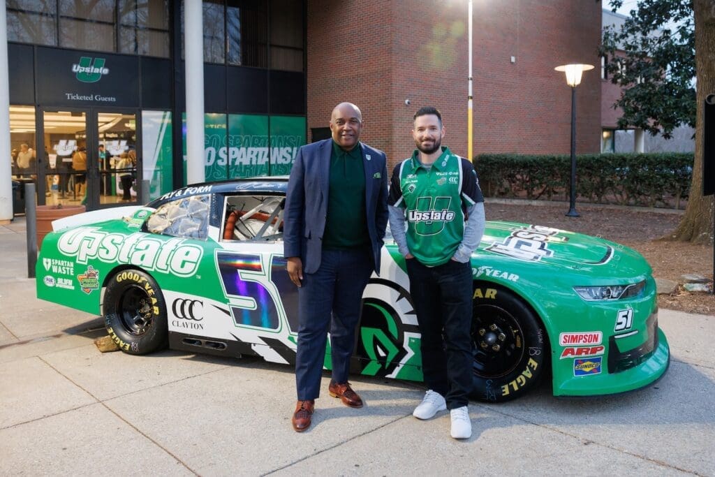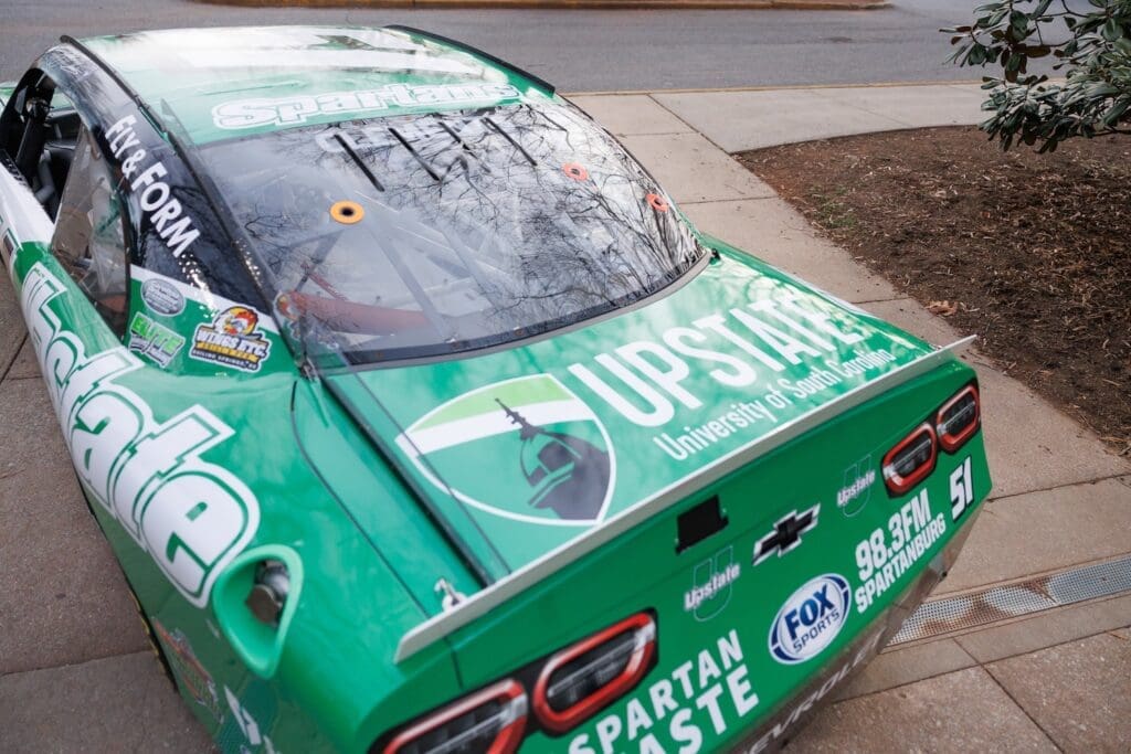 If you were near “The Hodge” on Wednesday, you couldn’t miss it. Parked right out front was the iconic #51 Chevrolet, but with a special twist. To honor the university, the car featured a custom USC Upstate livery, complete with the Spartan logo front and center on the hood.